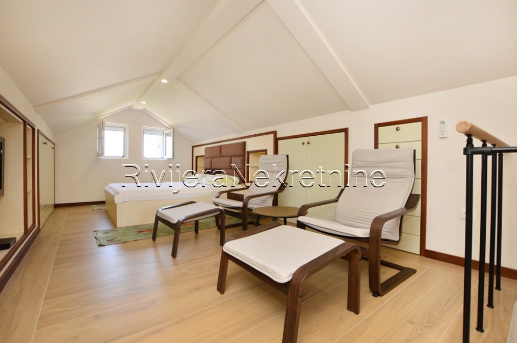 Gartenfläche rund um das Gebäude: 150 m². Attraktive Lage direkt am Meer, Möglichkeit zum Anlegen eines Bootes/Schnellbootes vor dem Gebäude. Entfernung von Herceg Novi: 15 km, Flughafen Tivat: 20 km.