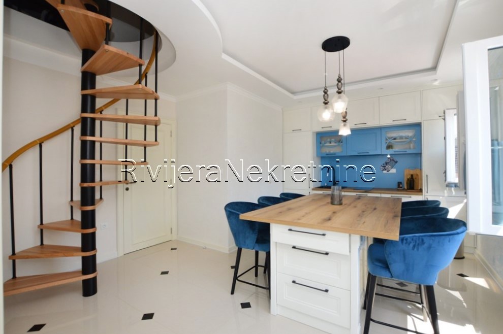 Luxushaus in erster Meeresreihe in Bijela. Wohnfläche 400 m². Erdgeschoss: Garage (35 m²) für zwei Autos, Ein-Zimmer-Wohnung (41 m²) + Innenhofterrasse + Abstellraum (10 m²). Erdgeschoss: Sommerküche mit Bad (24 m²) und kleinem Raum, Terrasse mit Meerblick (70 m²) + Pool (7 m²). Obergeschoss: Drei-Zimmer-Wohnung (98 m²), Südlage, möbliert. Obergeschoss: Maisonette-Wohnung (130 m²) mit drei Schlafzimmern und zwei Bädern. Das Haus ist in ausgezeichnetem Zustand und voll ausgestattet.