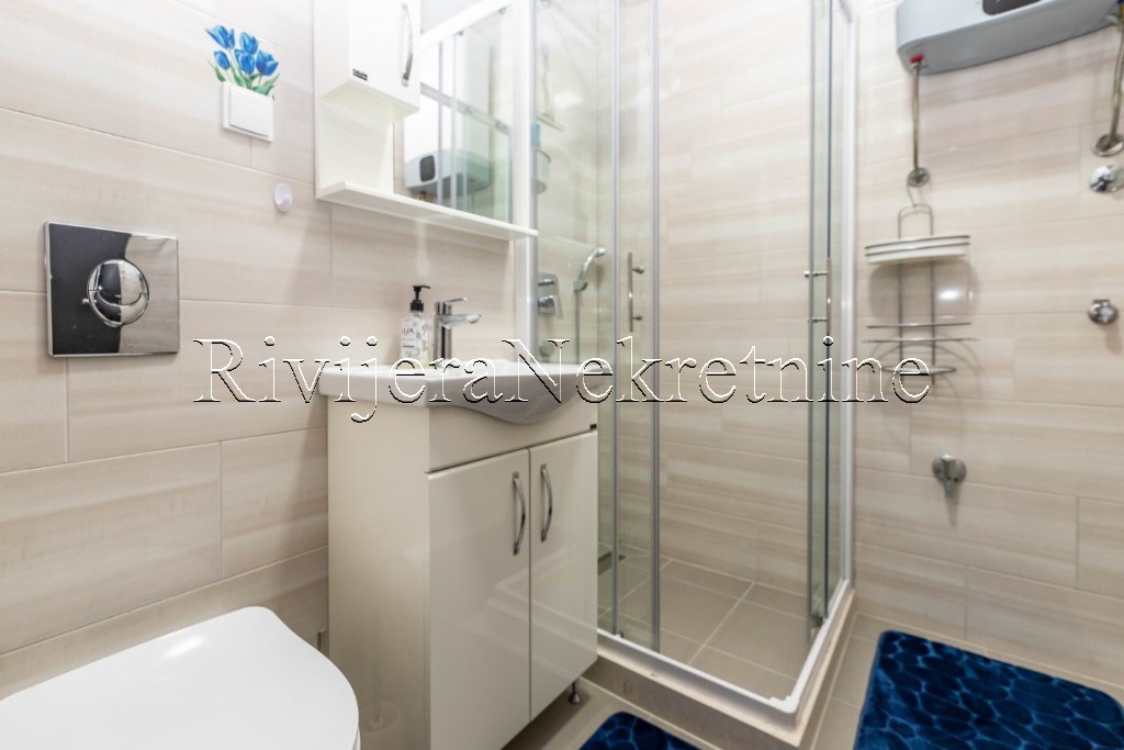Studio apartman sa dvoristem Djenovici Herceg Novi. Površina studia 20m2 + dvoriste 19m2. Raspored prostorija: dnevni boravak sa kuhinjom i trpezarijom, hodnik, kupatilo, terasa. Udaljen 200 m od mora. Parking mjesto. Cijena: 95.000 eura