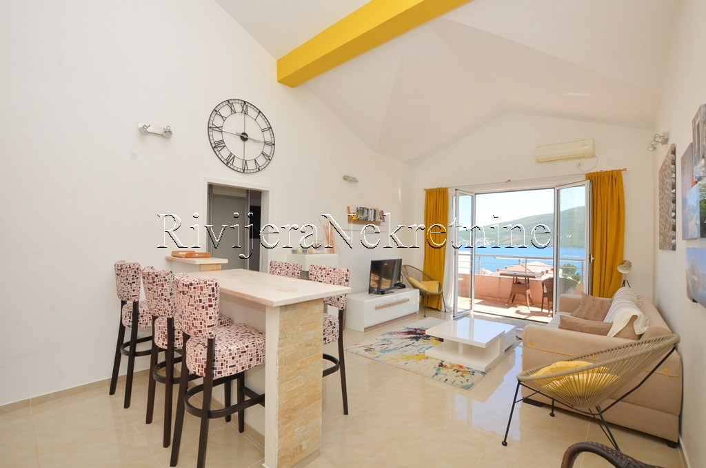 One-bedroom furnished apartment with panoramic sea view Djenovic. Apartment in a small residential building, south-facing, sunny. Location below the main road, 150 meters from the sea. Apartment in excellent condition, distance from the marina Portonovi 1.5 km, Herceg Novi 7 km. Price: 168,500 euros.