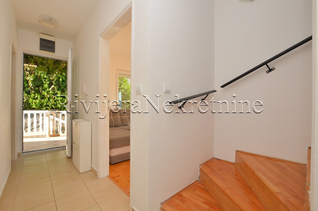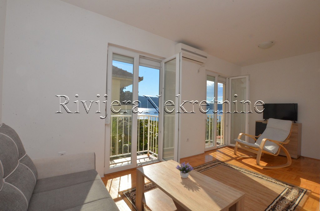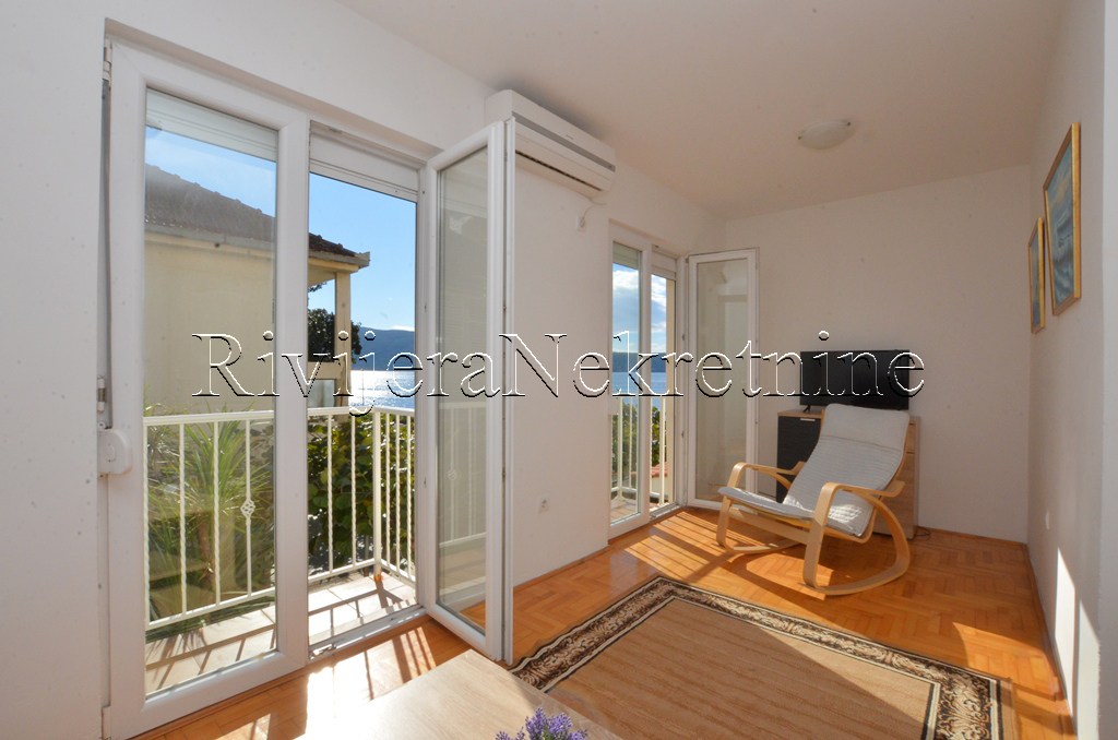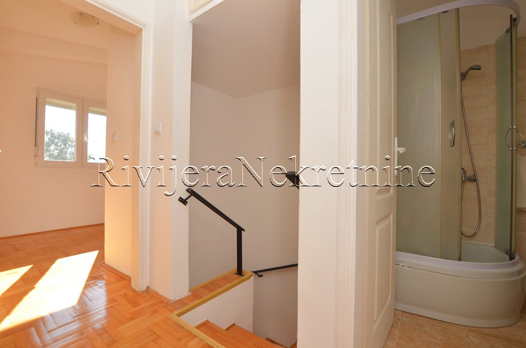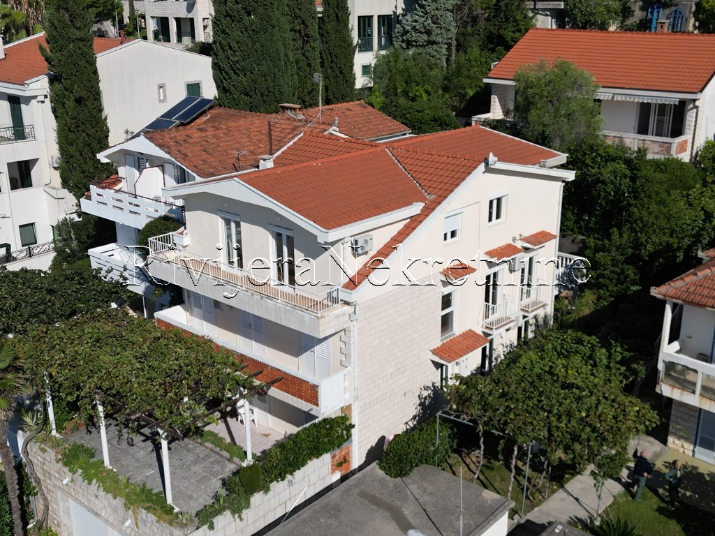 Semi-detached house first row to the sea, Savina Herceg Novi. Area 141m2, the house consists of two apartments, a one-bedroom apartment 34m2 and a three-bedroom duplex apartment 72m2. Auxiliary building garage 35m2 (can be a business space area. Ground floor: courtyard terrace, entrance hall, bedroom, bathroom, and living room with kitchen. First floor: entrance hall, living room, kitchen with dining room, (internal stairs). Attic: small hallway, three bedrooms, two small terraces, bathroom. Attractive location near the sea. Price: €650,000