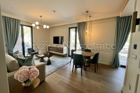 Меблированная двухкомнатная квартира с видом на море, центр Герцег-Нови. Площадь квартиры 73 м2, планировка: прихожая, ванная комната + туалет, две спальни, кухня с обеденной зоной,…